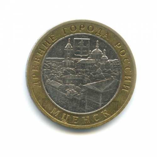 Юбилейная монета «10 рублей 2005 года „Мценск. Древние города России.“» Российская Федерация (1997 - 2013) (Россия) Би-металл: центр - медно-никелевый сплав, кольцо - латунь