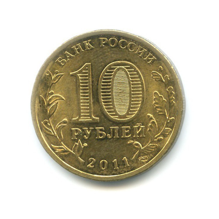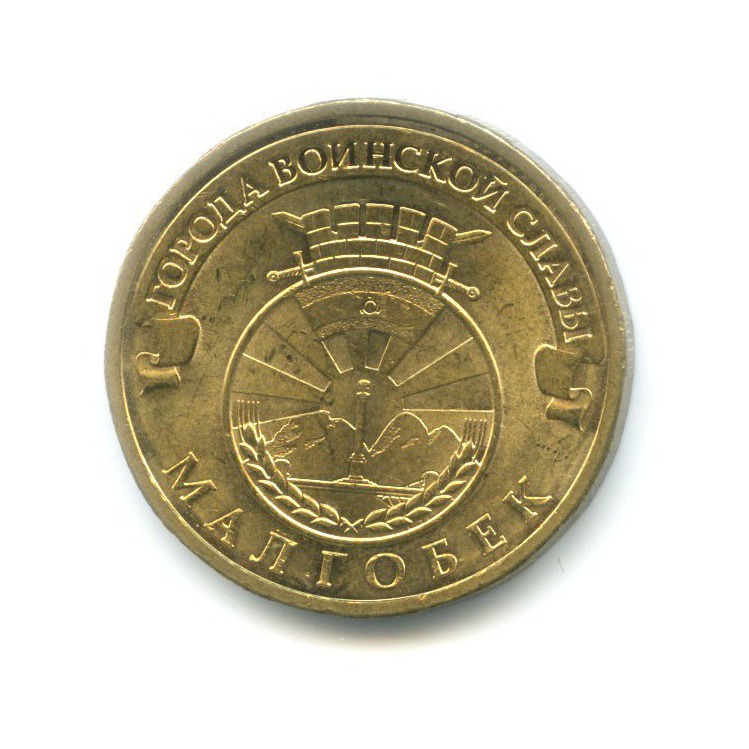 Юбилейная монета «10 рублей 2011 года „Малгобек. Города воинской славы.“» Российская Федерация (1997 - 2013) (Россия) Сталь с латунным покрытием