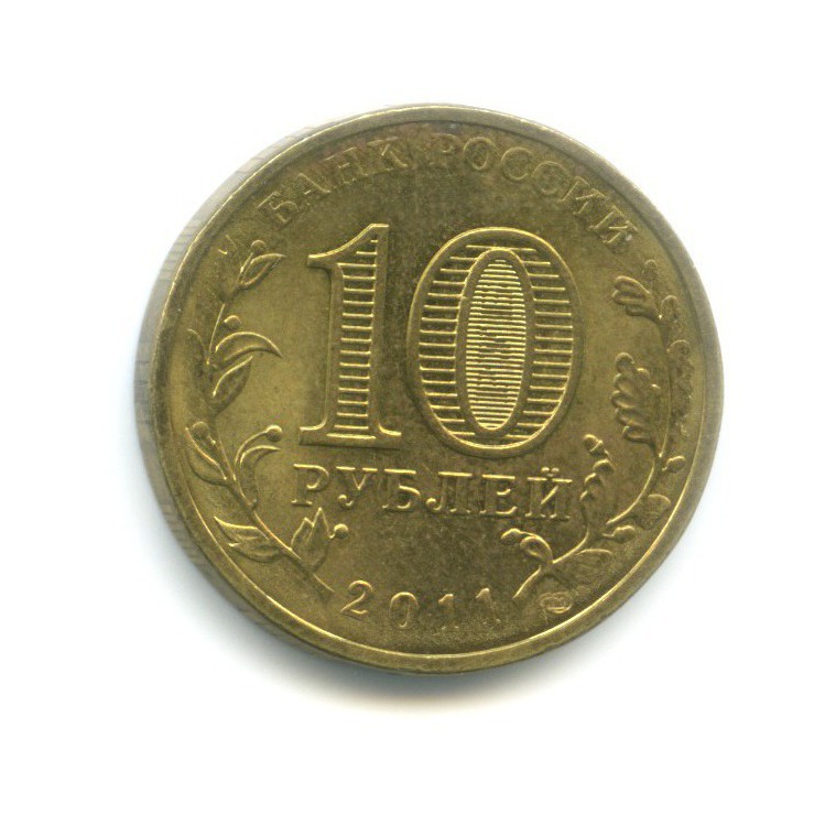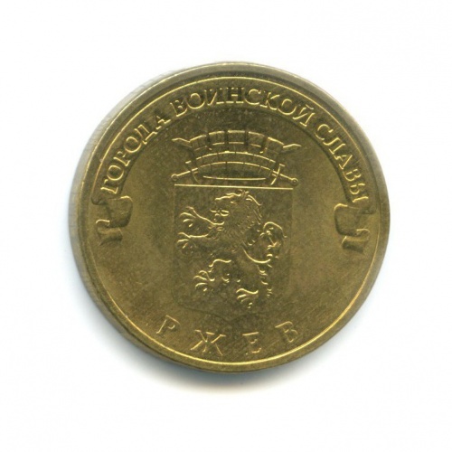 Юбилейная монета «10 рублей 2011 года „Ржев. Города воинской славы.“» Российская Федерация (1997 - 2013) (Россия) Сталь с латунным покрытием