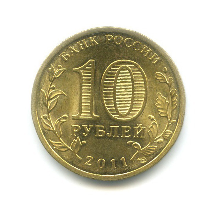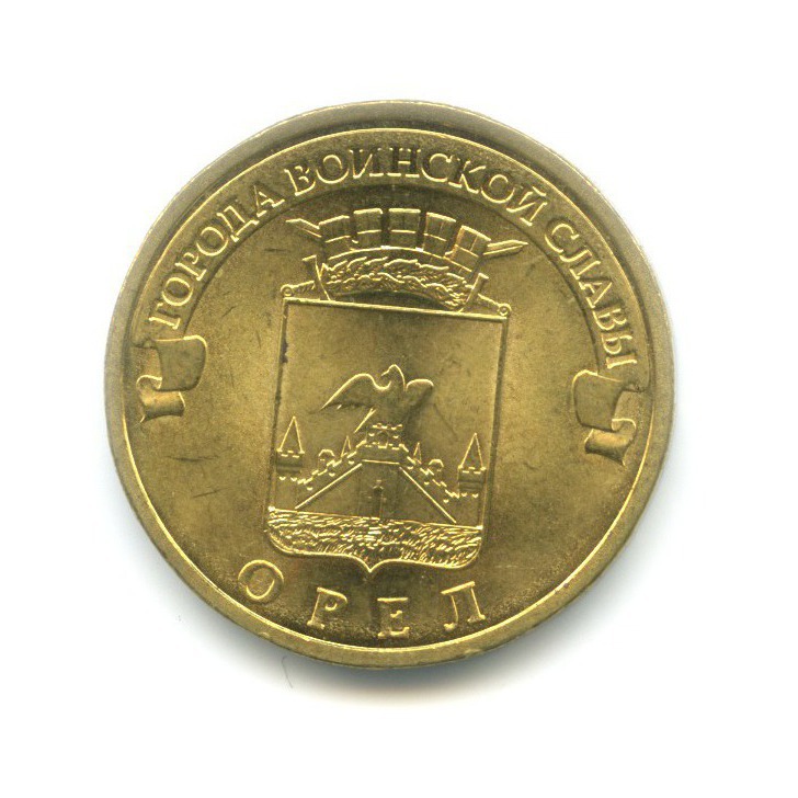Юбилейная монета «10 рублей 2011 года „Орёл. Города воинской славы.“» Российская Федерация (1997 - 2013) (Россия) Сталь с латунным покрытием