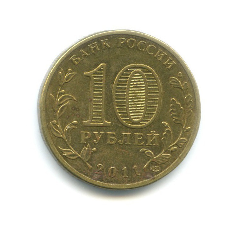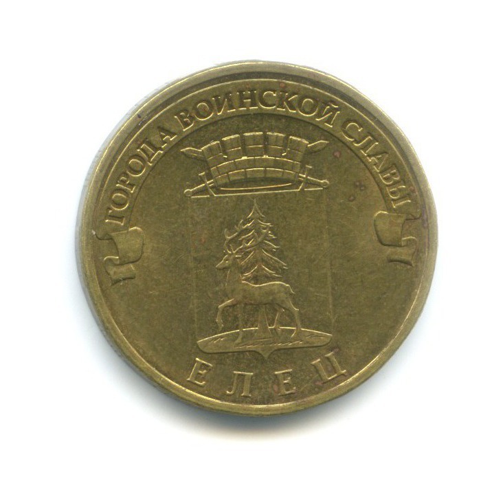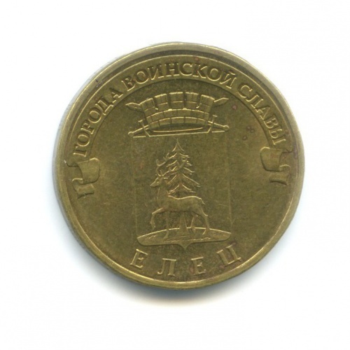 Юбилейная монета «10 рублей 2011 года „Елец. Города воинской славы.“» Российская Федерация (1997 - 2013) (Россия) Сталь с латунным покрытием