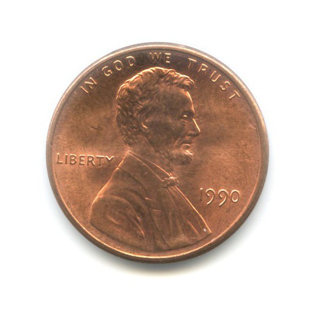 Монета регулярного выпуска «1 цент 1990 года» Соединенные Штаты Америки (1981 - 2013) (США) Без отметки монетного двора Цинк с медным покрытием