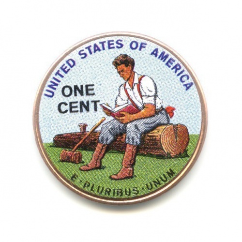 Юбилейная монета «1 цент 2009 года „Юность в Индиане. 200 лет со дня рождения Авраама Линкольна.“» Соединенные Штаты Америки (1981 - 2013) (США) Монетный двор: «D», Денвер Цинк с медным покрытием, эмаль