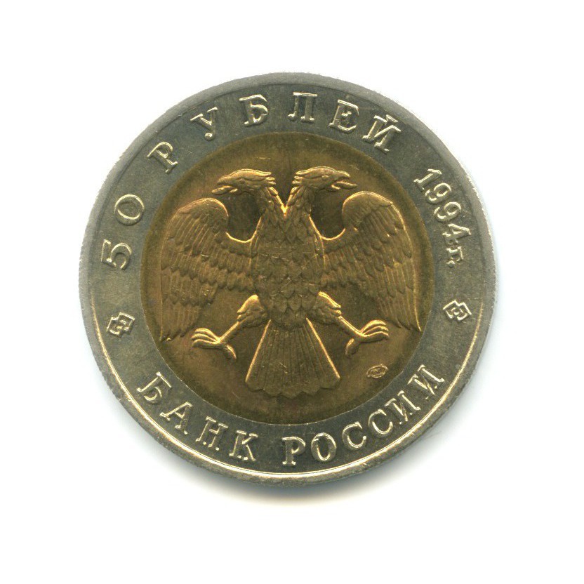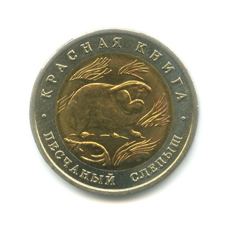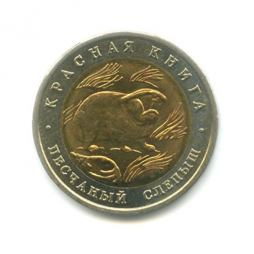 Юбилейная монета «50 рублей 1994 года „Песчаный слепыш. Красная книга.“» Банк России (1992 - 1996) (Россия) Би-металл: центр - алюминиевая бронза, кольцо - медно-никелевый сплав