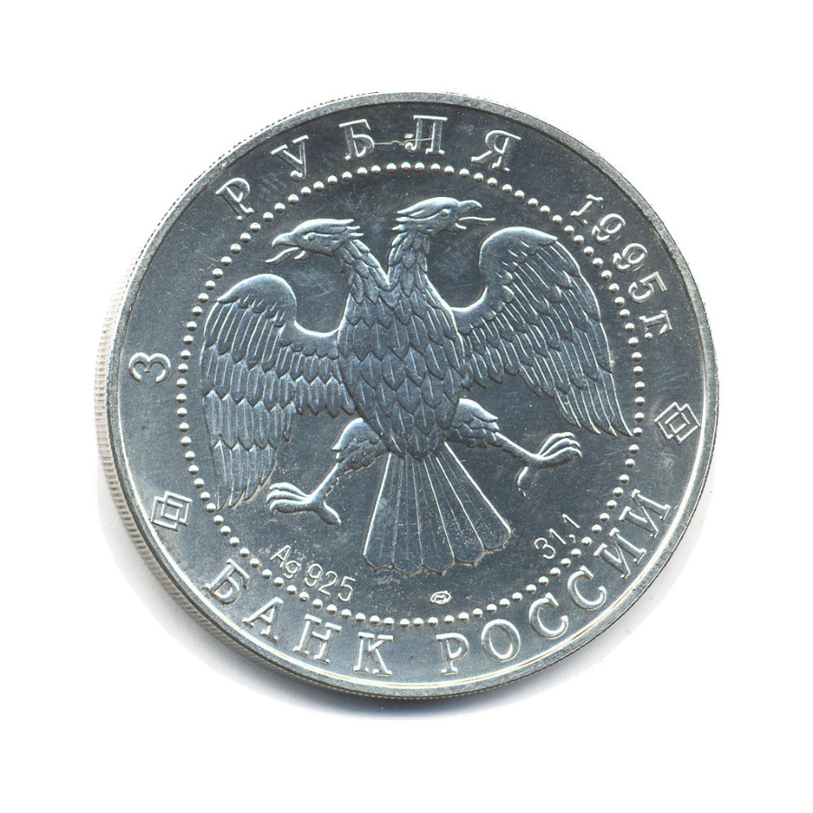 Коллекционная монета «3 рубля 1995 года „Соболь“» Банк России (1992 - 1996) (Россия) Монетный двор: «СПМД» — Санкт-Петербург Серебро 0.925