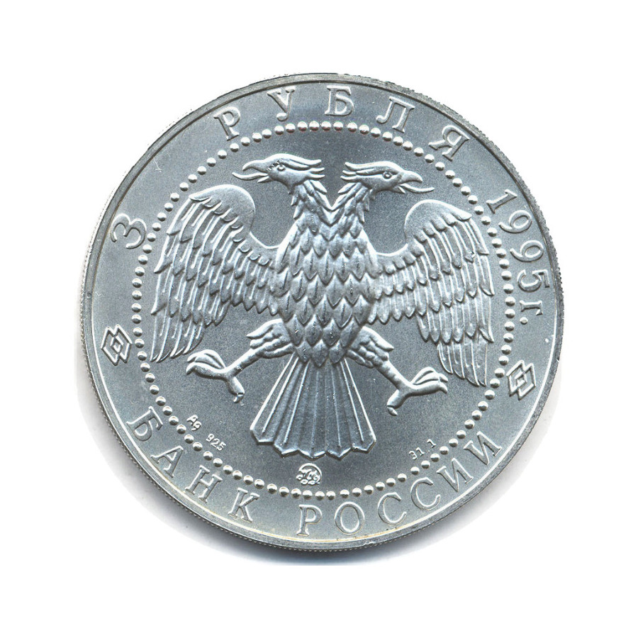 Коллекционная монета «3 рубля 1995 года „Соболь“» Банк России (1992 - 1996) (Россия) Монетный двор: «ММД» — Москва Серебро 0.925