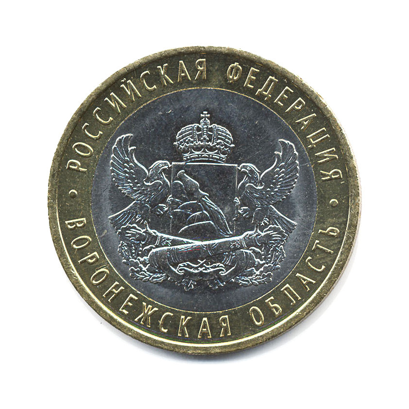 Юбилейная монета «10 рублей 2011 года „Воронежская область. Российская Федерация.“» Российская Федерация (1997 - 2013) (Россия) Би-металл: центр - медно-никелевый сплав, кольцо - латунь