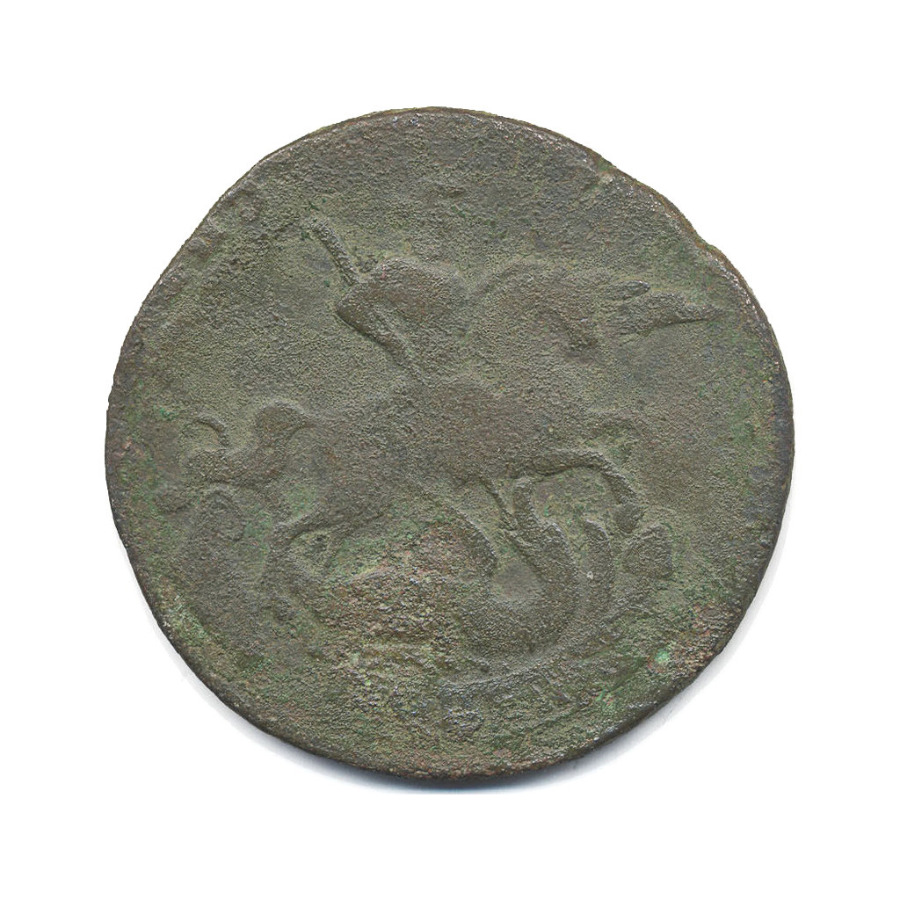 Монета регулярного выпуска «2 копейки 1757 года» 1741-1761 (Елизавета Петровна) (Российская Империя) Надпись под св. Георгием. Чеканка: Екатеринбург, Москва, Санкт-Петербург, Сестрорецк. Гурт - сетка. Медь