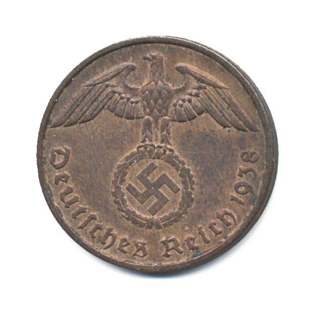 Монета регулярного выпуска «2 рейхспфеннига 1938 года» Нацистская Германия (1933 - 1945) (Германия (Третий рейх)) Монетный двор: «F», Штутгарт Бронза