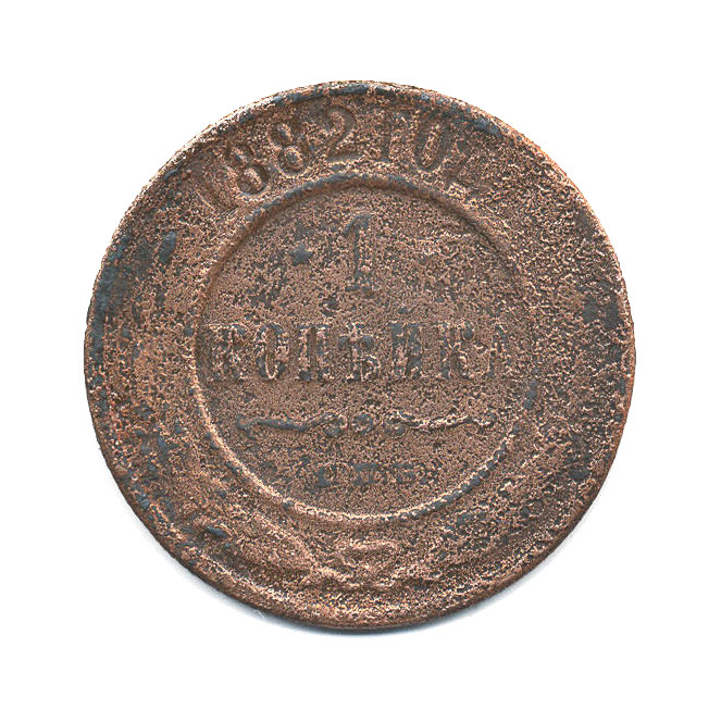 Монета регулярного выпуска «1 копейка 1882 года» 1881-1894 (Александр III) (Российская Империя) Монетный двор: Санкт-Петербургский монетный двор, Санкт-Петербург Медь