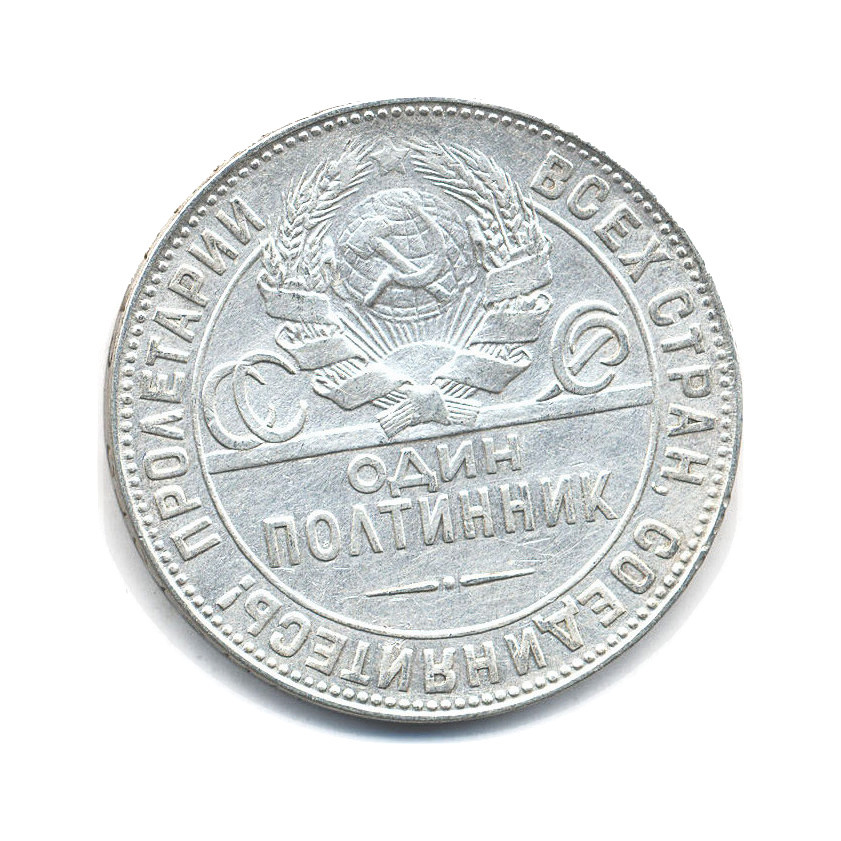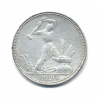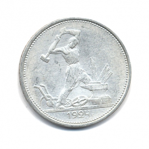 Монета регулярного выпуска «50 копеек 1924 года» Советский Союз (1924 - 1958) (СССР) Инициалы на гурте — «T.P.» (T.R.) — Томас Росс — минцмейстер Лондонского Монетного Двора Серебро 0.900