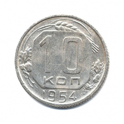 Монета регулярного выпуска «10 копеек 1954 года» Советский Союз (1924 - 1958) (СССР) Медно-никелевый сплав