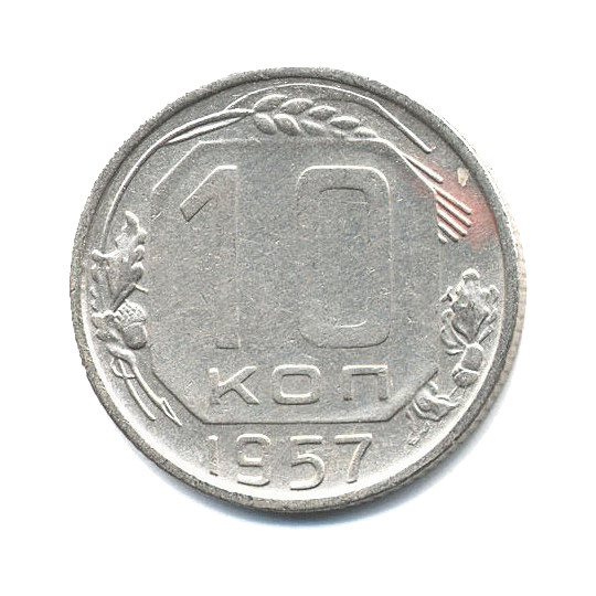 Монета регулярного выпуска «10 копеек 1957 года» Советский Союз (1924 - 1958) (СССР) Медно-никелевый сплав