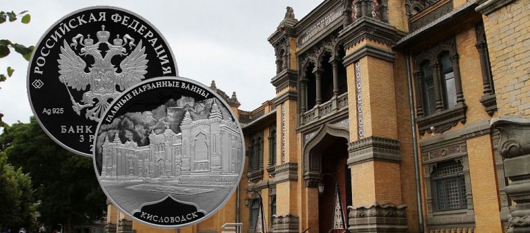 3 рубля с изображением здания Нарзанных ванн Кисловодска